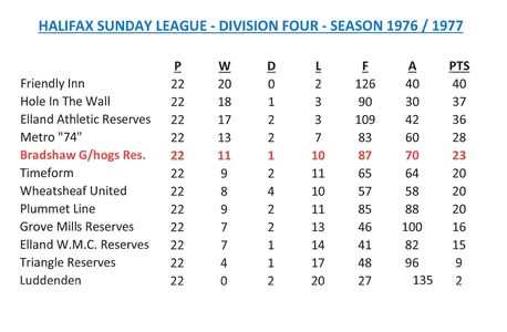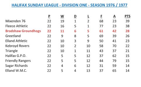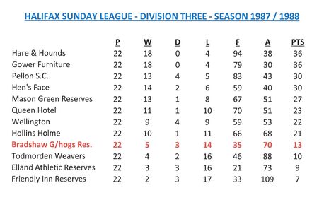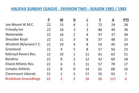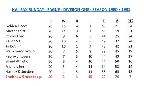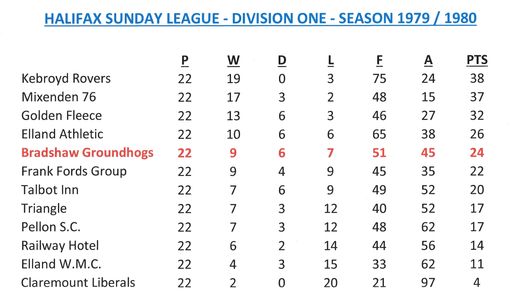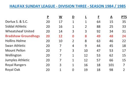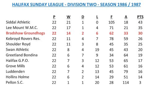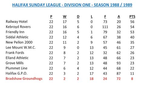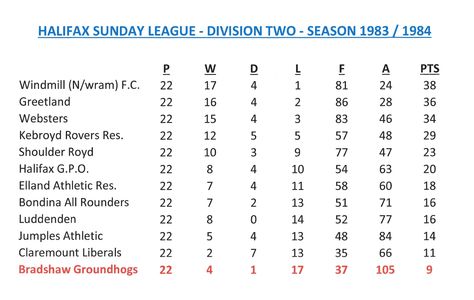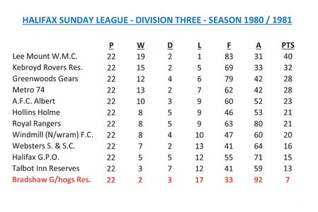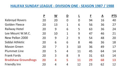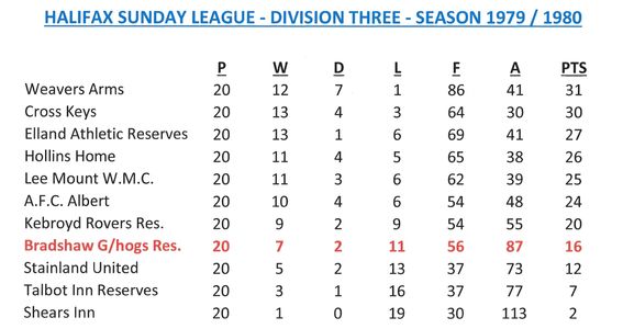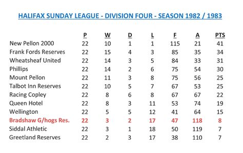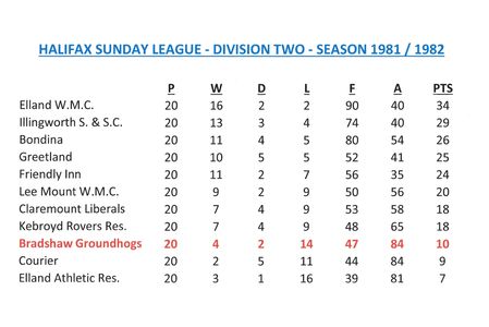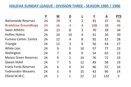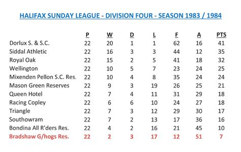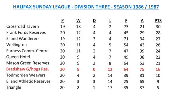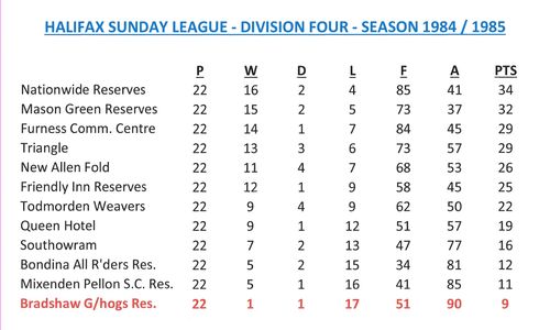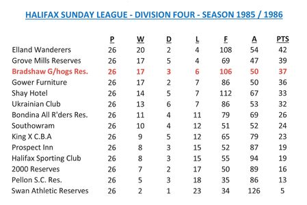 - Sunday League Tables